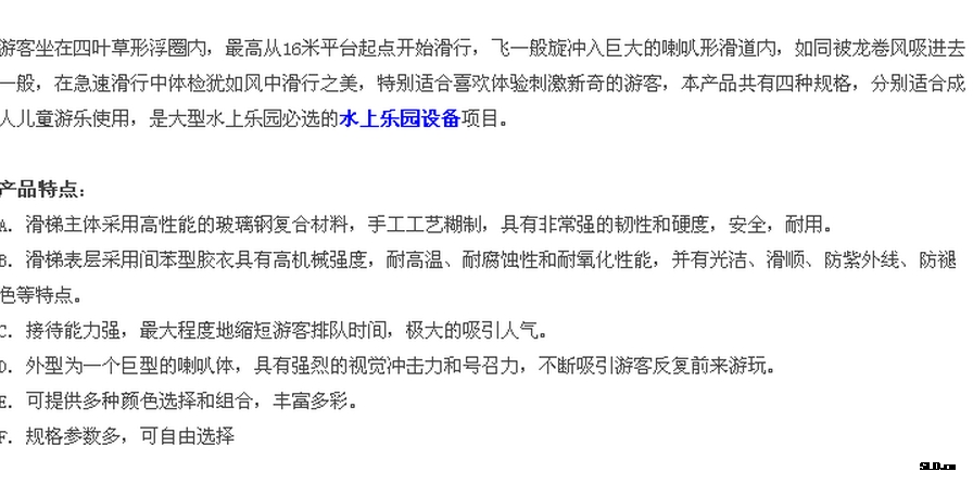 水上樂園設(shè)施您當(dāng)前的位置:網(wǎng)站首頁 > 產(chǎn)品展示 > 水上樂園設(shè)備 > 水上樂園設(shè)施>大喇叭滑梯
